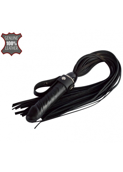 Необычный сексуальный атрибут в виде кожаной плети с рукоятью в виде фаллоса из натурального латекса. Плеть состоит из гладких хвостов натуральной кожи, которые образуют единый пучок, способный качественно разогреть тело партнёра. Рукоять-фаллос изготовлен из натурального латекса и имеет рельефную реалистичную форму. Универсальность конструкции секс-игрушки, значительно разнообразит интимные отношения и придаст им нотку пикантности и чувственности, что сделает её любимым сексуальным атрибутом Вашей пары. Рабочая длина рукояти - 14 см., диаметр - 3,2 см. Длина ударной части - 40 см.