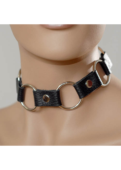 Кожаный черный ошейник с кольцами