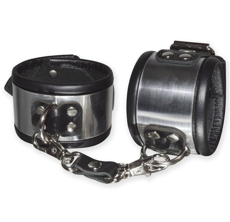 Эффектные серебристо-черные наручники с металлическим блеском (арт. 3166)