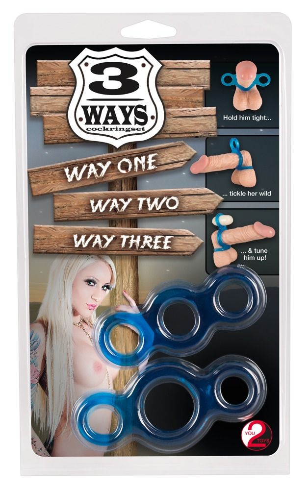 Набор из 2 эрекционных колес с петлями по бокам. Возможны несколько вариантов надевания. Между собой кольца отличаются внутренним диаметром и длиной. Внутренний диаметр - 1,7 и 3 см.