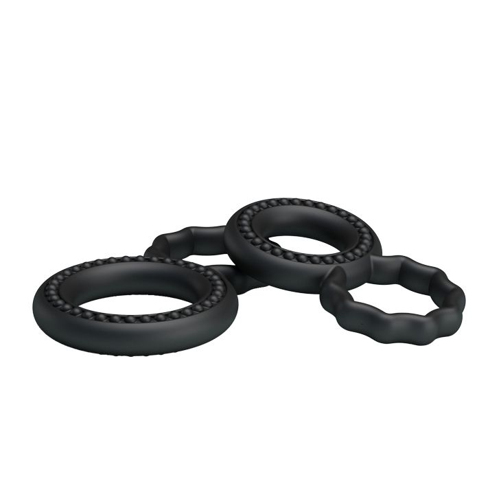 Набор эрекционных колец черного цвета для дополнительной стимуляции. Эластичные, легко растягиваются до необходимого размера. Эта маленькая изюминка поможет украсить сексуальную жизнь - усилить эрекцию и сделать половой акт более продолжительным. Внутренний диаметр колец - 2 и 3 см.