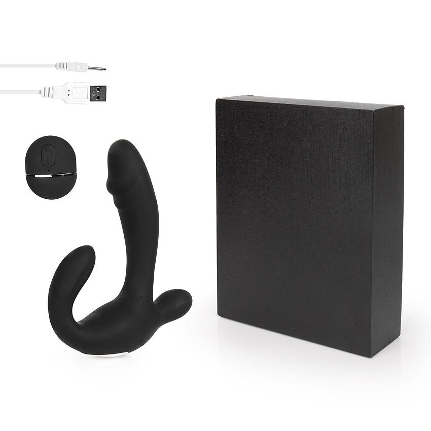 Черный двойной вибромассажер с 10 режимами вибрации и дистанционным пультом управления для любителей нестандартных эротических забав! Во время использования секс-игрушки длинный отросток вводится в анус, а короткий дарит массаж мошонки. Работа интимного аксессуара регулируется с помощью кнопок на его корпусе и пульте управления. Не требует батареек и заряжается с помощью USB-провода (в комплекте).