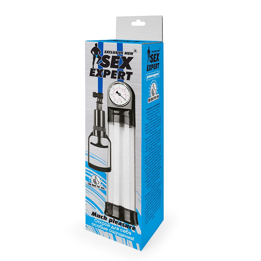 Прозрачная вакуумная помпа Sex Expert с манометром