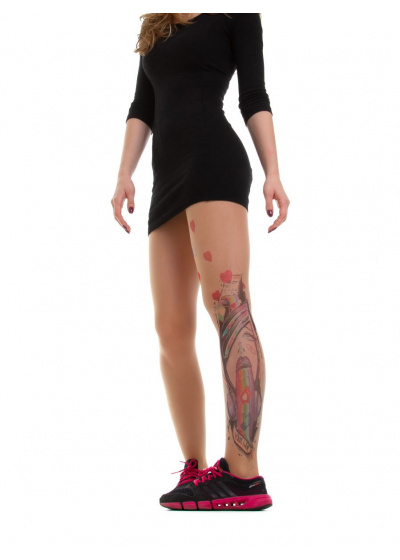 Телесные колготки с имитацией тату сбоку в виде инста-дивы