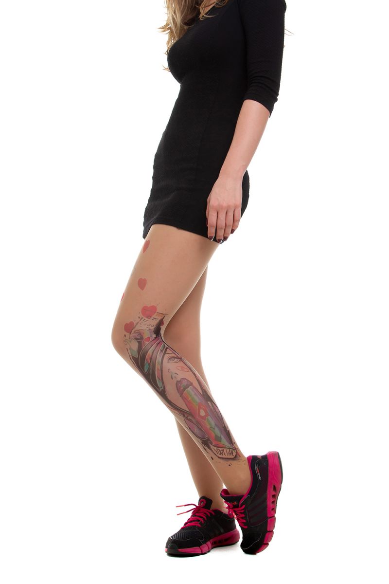 Колготки с имитацией татуировки. Мы немного пофантазировали на тему Instagram и ват наша Insta-дива, яркая, дерзкая, в ожидании твоих лайков. Классическая посадка на талии. Укрепленный мысок. Формованная ступня. Натуральный цвет с эффектом легкого загара. Матовые. Отличаются от обычных колготок высокой эластичностью и прочностью. С легкостью выдержат многократное использование и стирки. 3D технология плетения, поэтому они отлично растягиваются в высоту и ширину. Запатентованная технология нанесения изображений. Принты выглядят реалистично даже при близком рассмотрении. Это не вышивка - нет эффекта квадратиков и махровой изнанки. Изображения сохраняют цвет, 100% устойчивость к воде и стиральному порошку. Используются безопасные водные краски. Плотность - 20 ден.