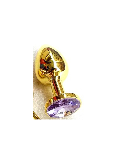 Золотая анальная пробка Golden Plug Small со светло-сиреневым кристаллом (арт. GM-15)