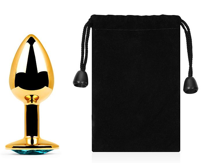 Золотистая анальная пробка с голубым стразом - 7,2 см. (арт. GS-05)