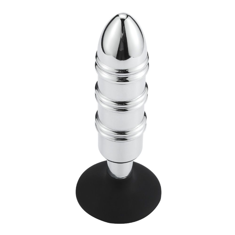 Серебристая рельефная анальная пробка на черной присоске - 16,5 см. (арт. RY-141)