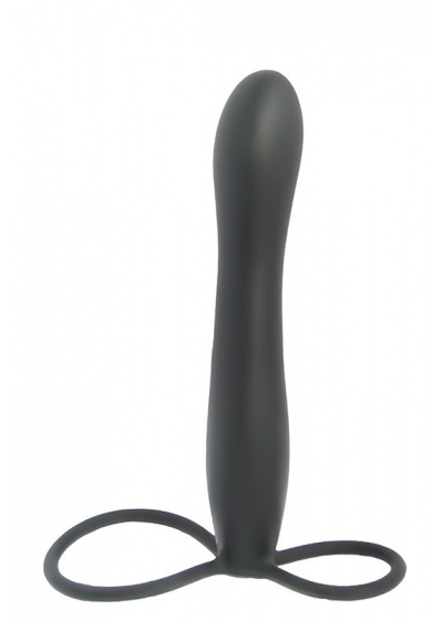 Черный страпон с подхватом мошонки. Насадка страпона подходит для вагинального и анального секса. Рекомендуется использовать со смазкой. Диаметр петель - 3 и 5 см.
