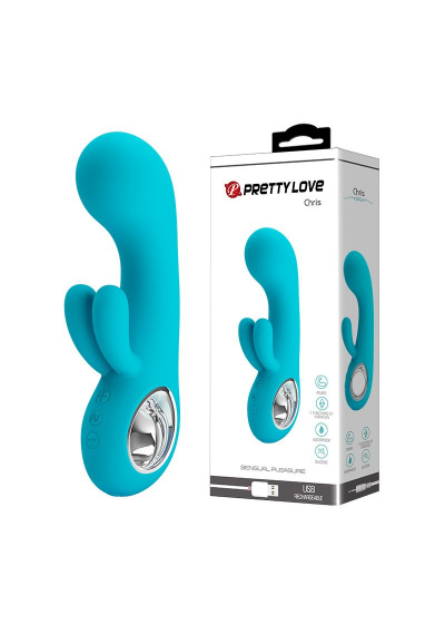 Бирюзовый вибратор Chris с клиторальным отростком - 15,4 см. (арт. BI-014507-2)