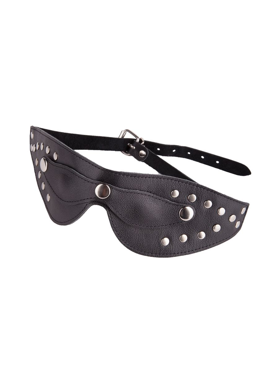 Чёрная кожаная маска с велюровой подкладкой (арт. 3080-1)