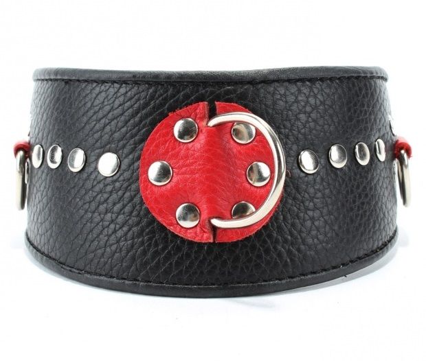 Черно-красный кожаный ошейник с металлическими клепками