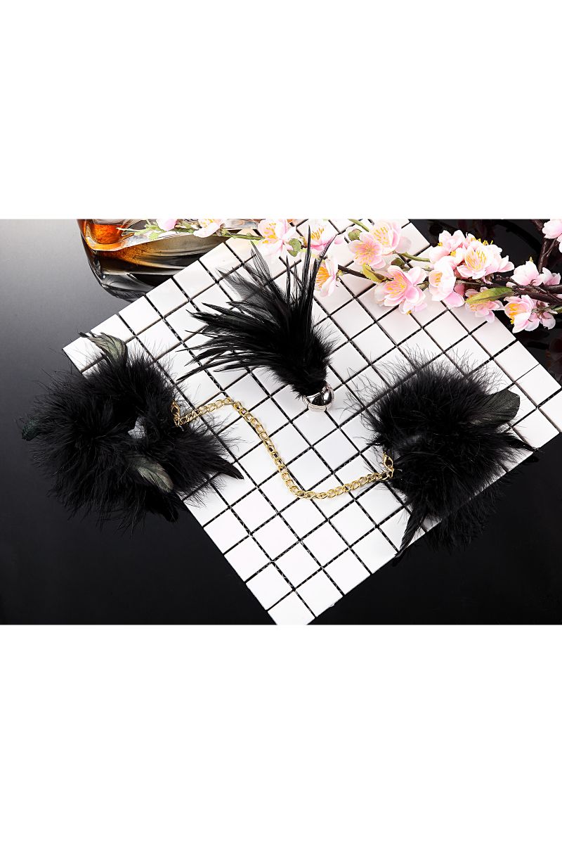 Перьевой эротический набор Romfun - наручники с цепочкой и кисточка-щекоталка (арт. QS-002)