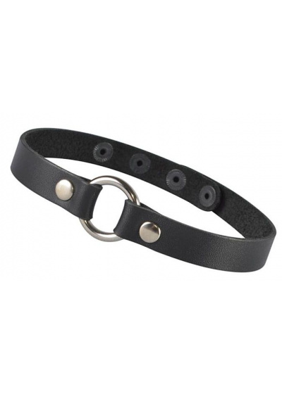 Сексуальный чокер из натуральной кожи с металлическим кольцом. Фурнитура имеет никелевое покрытие. Ширина чокера - 1,5 см. Диаметр кольца - 2,8 см.