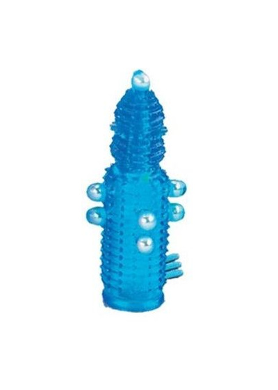 Голубая эластичная насадка на пенис с жемчужинами, точками и шипами Pearl Stimulator. Прирост длины - 3 см. Внутренний диаметр - 2 см.