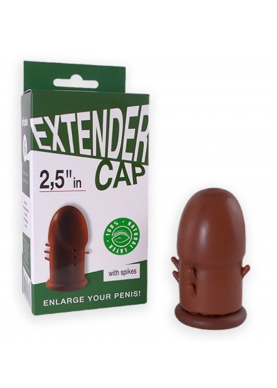 Коричневый латексный удлинитель пениса 2.5 in с шипиками. Прирост длины - 6,3 см.
