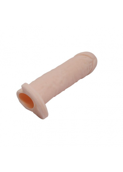 Удлиняющая насадка на пенис придется по вкусу любителям реалистичных секс-игрушек. Ярко выраженная головка, текстурированная поверхность, естественный оттенок делают ее максимально похожей на половой член. Интимный аксессуар хорошо растягивается и легко надевается на пенис, увеличивая его длину на 6 см. Кольцо для мошонки надежно фиксирует изделие и продлевает эрекцию. Секс-игрушка изготовлена из мягкого, приятного на ощупь материала, который обеспечивает максимально приятные ощущения обоим партнерам. Изделие необходимо надевать на половой член, находящийся в состоянии слабой эрекции. Его непрерывное использование не должно превышать 15-20 минут. Внутренняя длина насадки - 11 см.