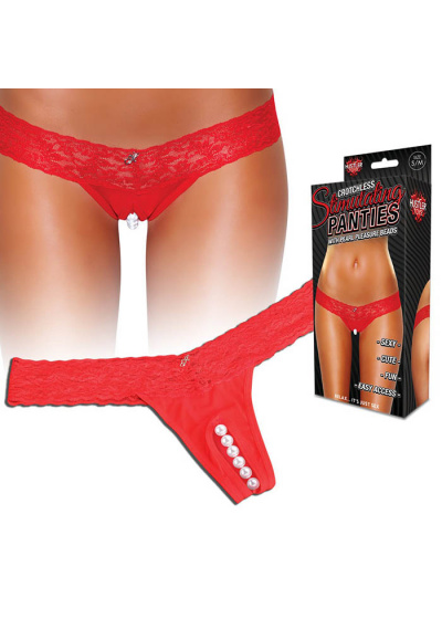 Красные трусики-тонг с жемчужной нитью (арт. HVP02-RED)