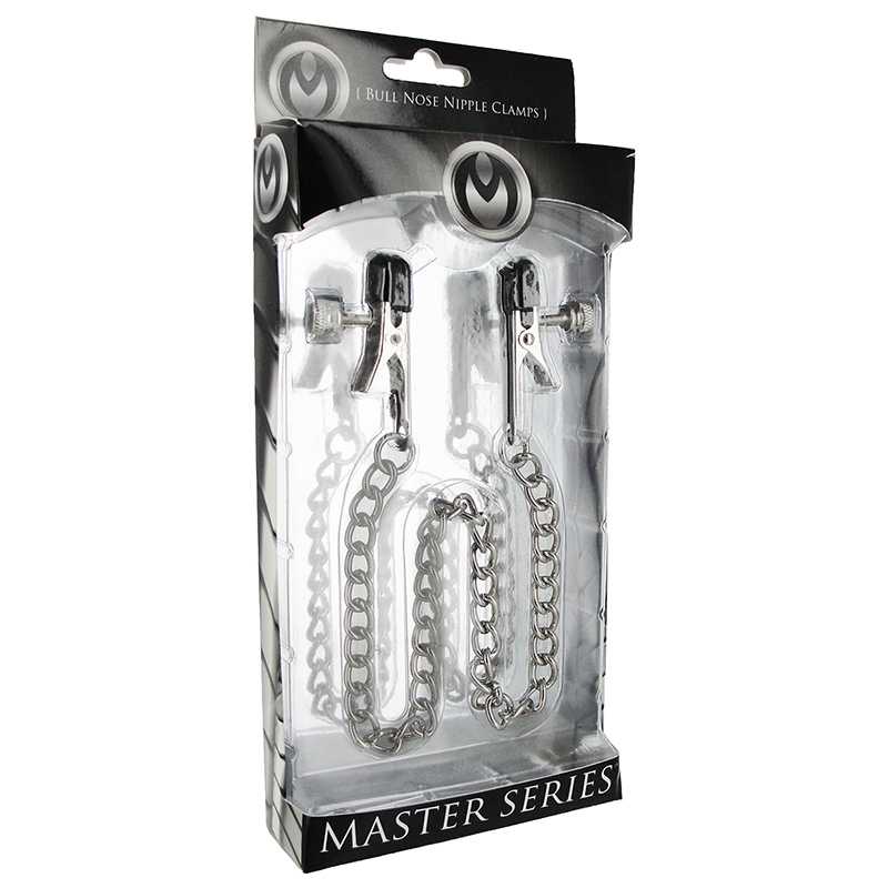 Зажимы для сосков из металла с мягкими резиновыми накладочками с регулированием давления на соски. Зажимы соединены цепочкой со средними звеньями. Длина цепочки - 31 см.