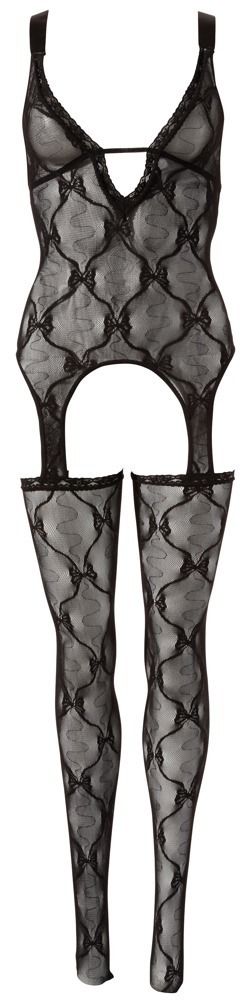 Чёрный ажурный кэтсьюит с открытыми бёдрами (арт. 2631105)