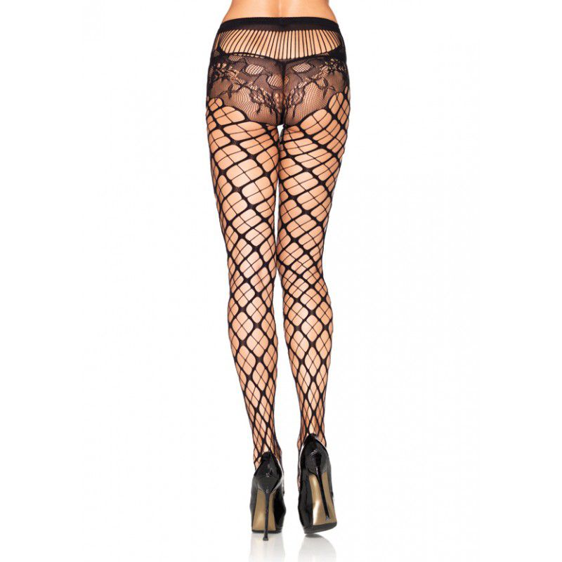 Чулки с геометрическим рисунком и ажурной кружевной попкой.
