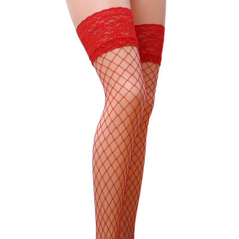 Чулки в крупную сетку с кружевной резинкой с силиконовыми полосами (арт. ST021)