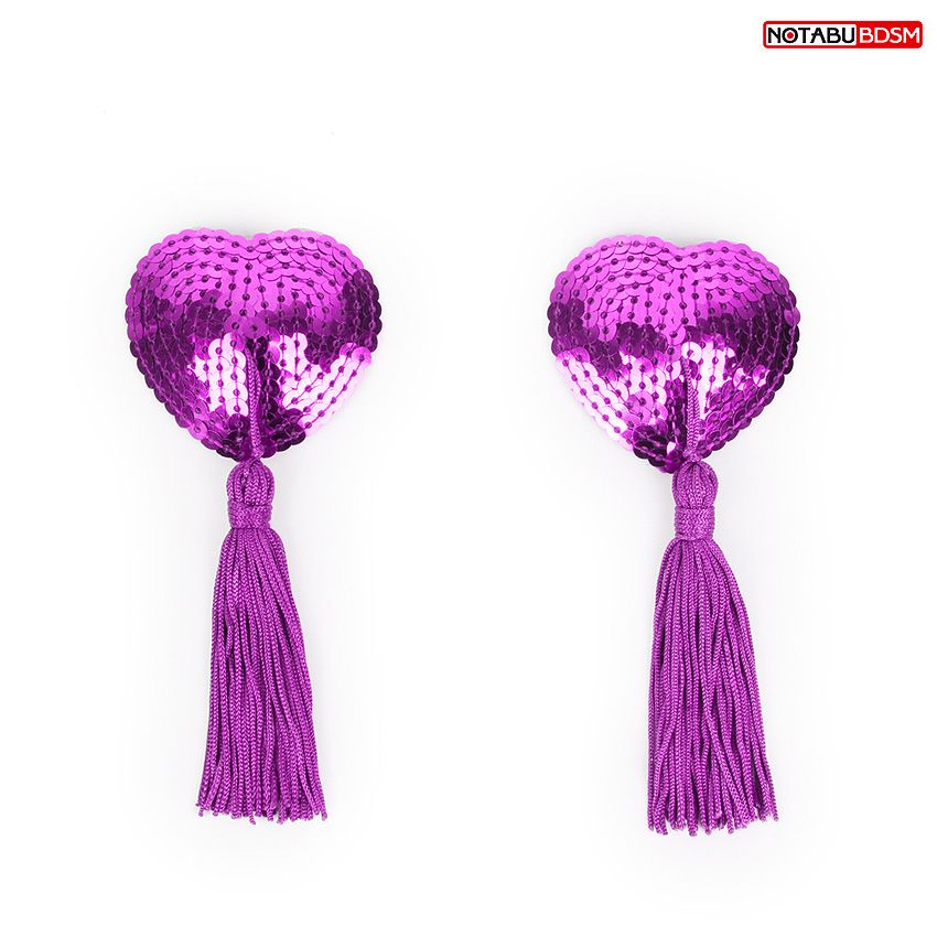 Пэстисы в форме сердца с кисточками. Украшены мелкими пайетками.