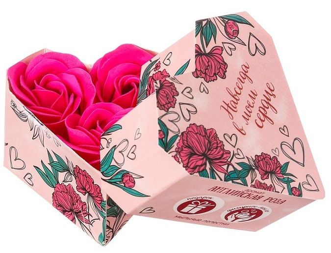 Мыльные розы в подарочной коробке Навсегда в моём сердце - 3 шт.