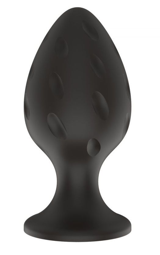 Черная средняя силиконовая анальная пробка с рельефом в виде углублений