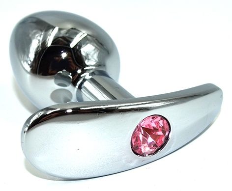 Серебристая анальная пробка для ношения из нержавеющей стали с розовым кристаллом - 8 см. (арт. AP-AL034-SLP)