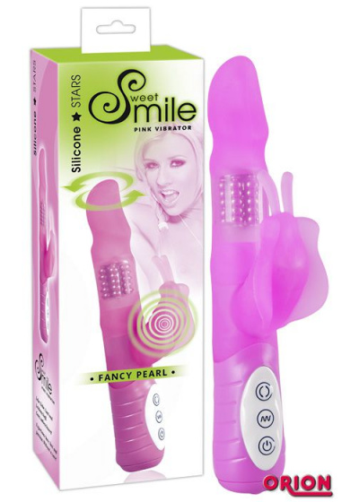 Многофункциональный розовый вибратор Smile Fancy с клиторальной бабочкой - 22 см. (арт. 0576700)