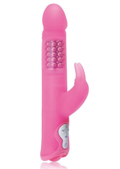 Водонепроницаемый вибратор розового цвета со стимулятором клитора в виде зайчика, имеет восемь вращающихся рядов массажных шариков и реалистичную головку с ротацией. Сделан из гипоаллергенного силикона. Удобный пульт управления на рукояти игрушки позволяет регулировать 3 скорости вращения массажных шариков, а также 7 функций вибрации, пульсации и эскалации. Рабочая длина - 13,5 см.