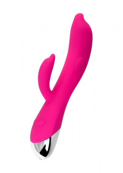 Розовый вибратор-кролик «Дрючка-Удовольствие». Массирует внутри и снаружи одновременно! Влагостойкий корпус. 6 режимов вибрации. USB-зарядка. Рабочая длина - 13 см.